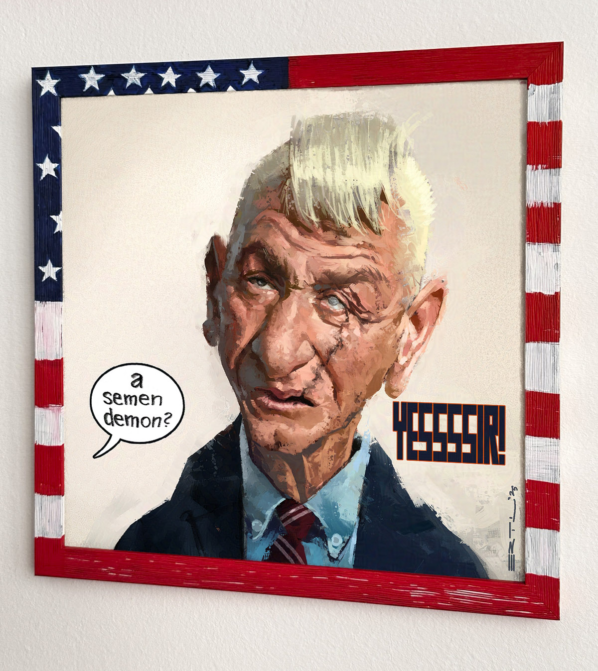 Die Karikatur gibt es als Pigmentdruck in Museumsqualität gedruckt von Reprografie Schedy, 30x30cm, im Spezialrahmen - Anfragen bitte HIER